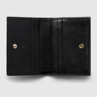 The GG Emblem collection reinterprets iconic motifs through creativity and innovative functions, and is envisioned to be cherished for years to come. Introduced in the latest line of small accessories, this mini wallet is crafted from emblematic GG grainy leather. The inside features multiple compartments for versatile use. - Black GG grainy leather - Taffeta lining - Inside: 5 card slots, open pocket, 1 zip pocket, 1 bill compartment - Closed: 4.3"W x 3.3"H x 1.2"D; Open: 4.3"W x 7"H - Weight: 0.28lbs approximately - Made in Italy