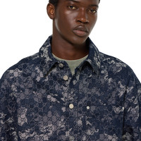 For the Pre-Fall 2025 collection, denim pieces with intricate details elevate everyday looks. Crafted from dark blue and ivory GG marbled effect denim jacquard, this shirt is finished with Gucci metal buttons. - Dark blue and ivory GG marbled effect denim jacquard - Gucci metal buttons - Point collar - Short sleeves - Front button closure - Made in Italy