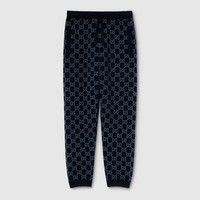 The distinctive GG is translated across different textile techniques in the collection, offering visual richness. This pair of leisure pants is made from GG knit double wool. - Dark blue ad grey GG knit double wool - Elastic waistband with drawstring - Side pockets - Length: 40.9"; based on a size S
