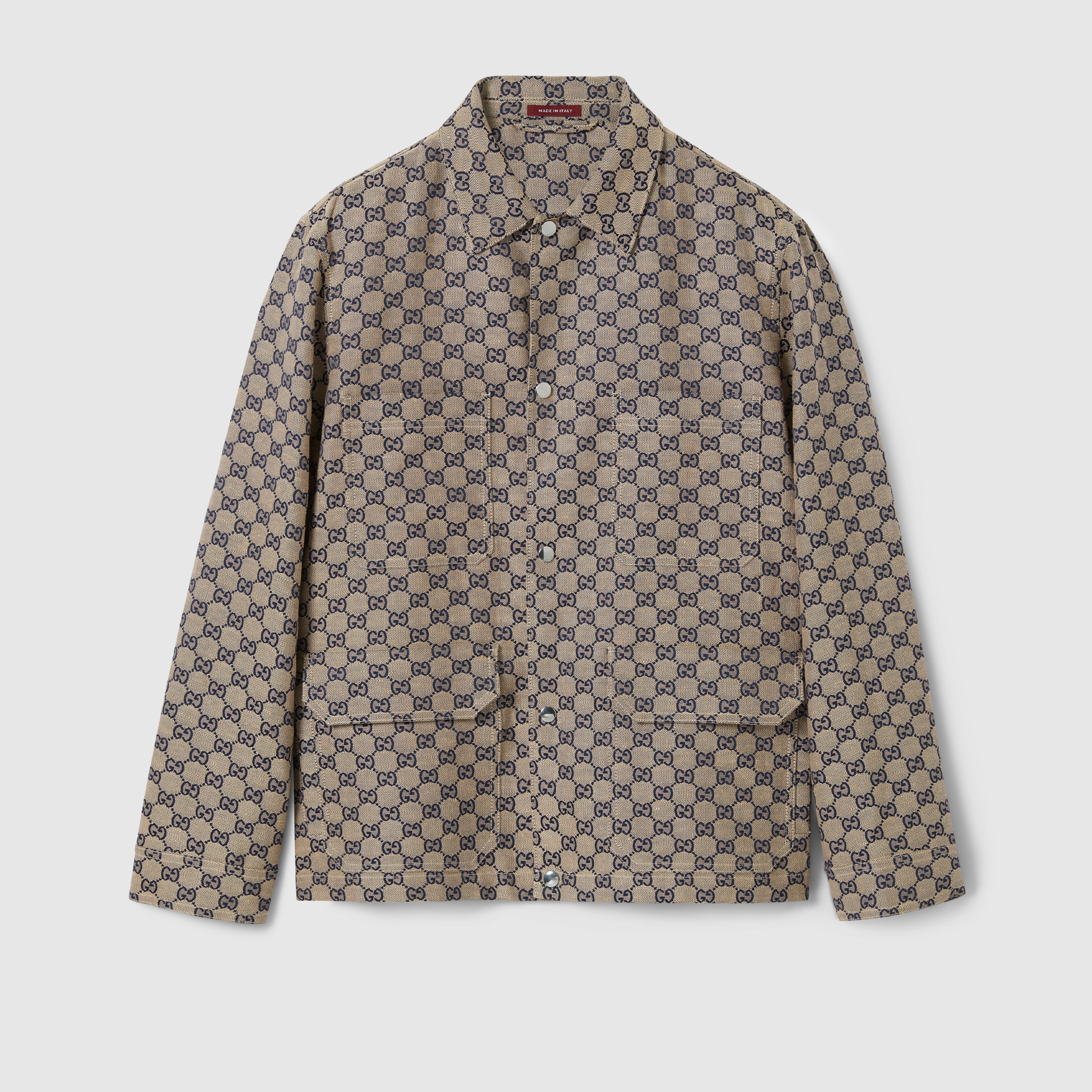 Emblematic codes of the House and refined patterns are reinterpreted in contemporary ways for the Pre-Fall collection. This boxy jacked is presented in GG linen blend canvas, offering a versatile option for the transitional wardrobe. - Beige and blue GG linen blend canvas - Unlined - Point collar - Two patch pockets - Two flap pockets - Button closure - Length: 28.3" based on a size 48 (IT) - Made in Italy - The product shown in the image is a size 48 (IT)