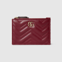 Presented in Gucci Rosso Ancora red matelasse chevron leather, this GG Marmont key case features an internal keychain hook. The slim accessory is completed by the line's recognizable Double G hardware. - Gucci Rosso Ancora red matelasse chevron leather - Light gold-toned hardware - Red taffeta lining - Double G - Inside: keychain hook - Outside: back flat pocket - Zip closure - W4.7" x H3.3" - Weight: 0.1lb, approximately - Made in Italy