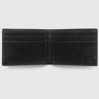 A bi-fold wallet, distinguished by our signature Double G hardware. Made in calfskin leather heat-stamped to achieve a boar effect, giving it a textured appearance. - Black metal-free tanned leather - Double G - Four card slots and one bill compartment - Open: 8.5"W x 3"H - Closed: 4.3"W x 3"H x .4"D - Made in Italy