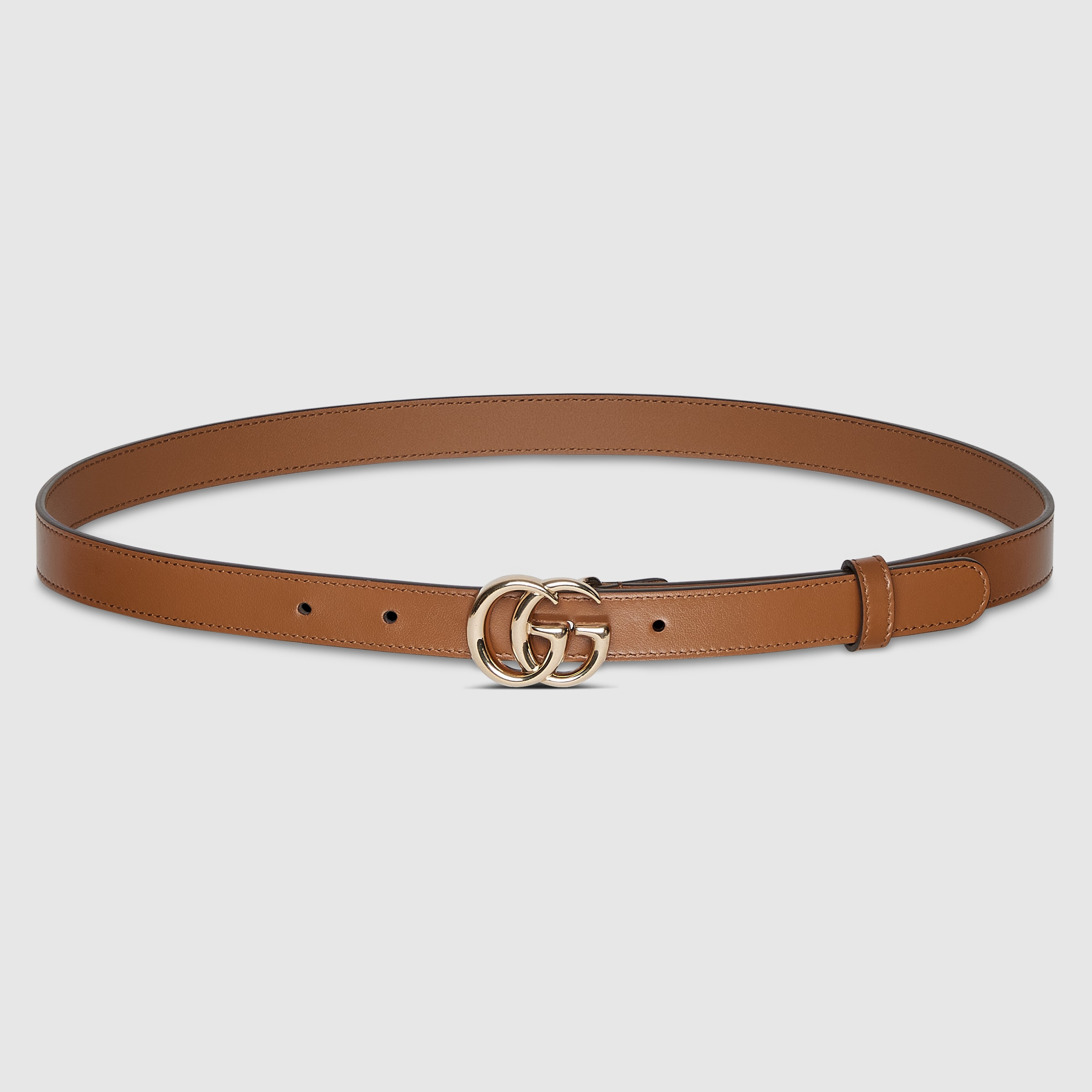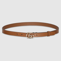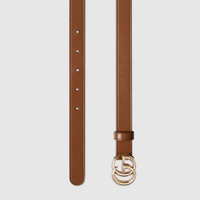 This everyday belt is presented as part of the Pre-Fall 2025 collection. Taking inspiration from the heritage of the House, it's crafted from a smooth leather and defined by a light gold-toned Double G buckle. - Brown leather - Light gold-toned hardware - Double G buckle - Buckle: 2.36"W x 1.85"H - 0.8" belt width - Made in Italy - Can be worn as a hip or waist belt. Sizing will differ based on where the belt is worn, please refer to the size guide to find your size.