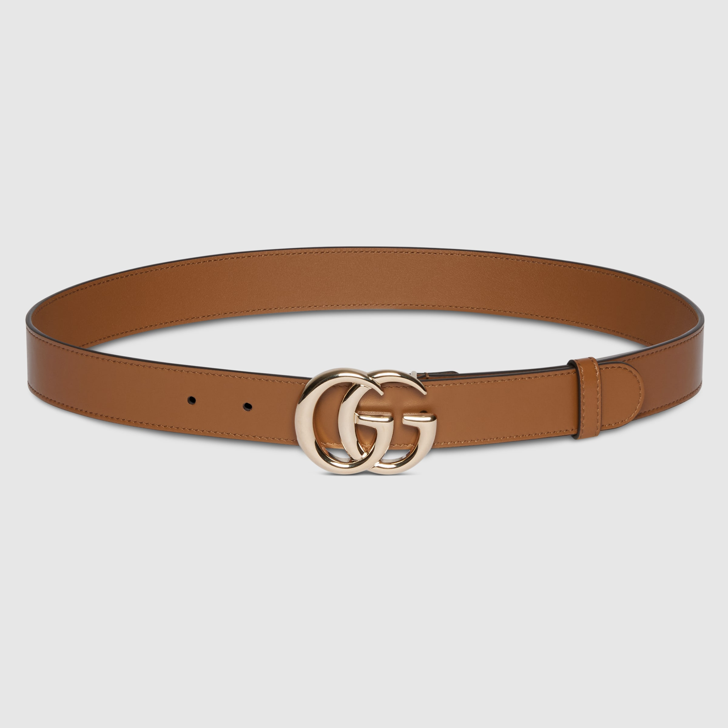 This everyday belt is presented as part of the Pre-Fall 2025 collection. Taking inspiration from the heritage of the House, it's crafted from a smooth leather and defined by a light gold-toned Double G buckle. - Brown leather - Light gold-toned hardware - Double G buckle - 1.2" width - Made in Italy - Can be worn as a hip or waist belt. Sizing will differ based on where the belt is worn, please refer to the size guide to find your size.