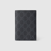 Slim and compact small leather goods from the latest collections highlight new colorful shades sporting the GG logo with a bicolor design. This passport case with four card slots appears in a black GG Supreme canvas, complete with a smooth grey leather interior. - Black GG Supreme canvas - Grey leather interior - Brass hardware with dark grey ceramic-effect finishing - Moiré lining - GG detail - Inside: 4 card slots, 1 passport pocket - Closed: 3.7"W x 5.3"H; Open: 7.5"W x 5.3"H - Weight: 0.158lbs approximately - Made in Italy