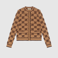 The GG motif returns in new iterations – including lamé offerings, bouclé intricate tweeds in refined materials and sequin embellishments. Part of the selection, this cardigan is crafted from GG wool bouclé jacquard. - Camel and brown GG wool bouclé jacquard - Rib trim - Gold-toned GG buttons - Crewneck - Long sleeves - Two front pockets - Sleeve Length: 24,8" - Button closure - Length: 21,2" based on a size S - Made in Italy - The model is 5'8" and is wearing size small - Hem Width: 17,3"