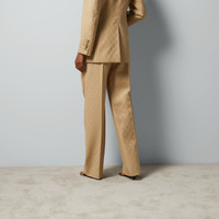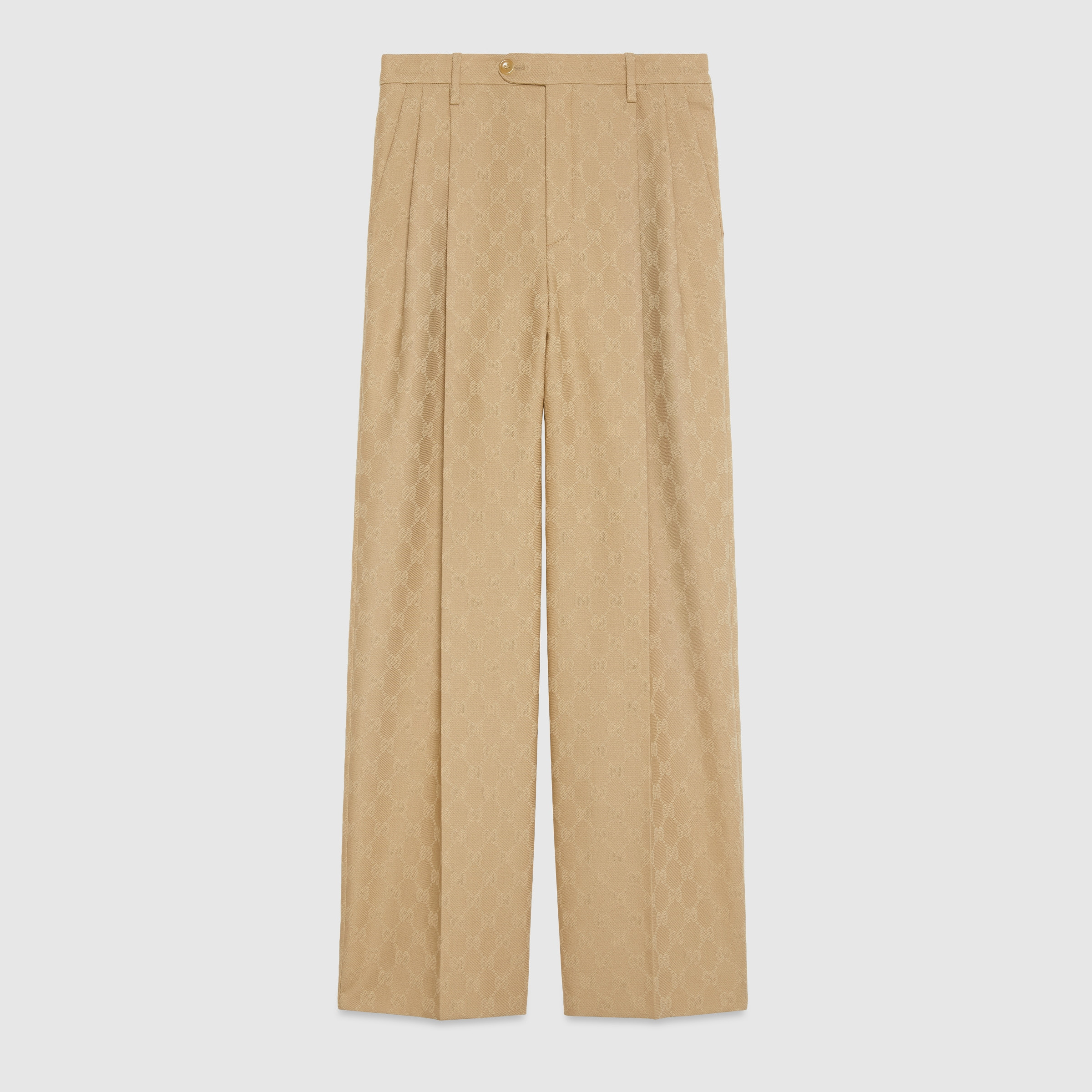 First used in the 1970s, the GG logo was an evolution of the original Gucci rhombi design from the 1930s, and from then it's been an established symbol of Gucci's heritage. Crafted from soft GG wool, these straight leg pants explore fresh interpretations of the House's historical monogram. - Camel GG wool jacquard - Belt loops - Front pleats - Side pockets - Straight leg - Button and zip closure - Length: 42.5" based on a size 40 (IT) - Leg opening: 21.2" based on a size 40 (IT) - Made in Italy - The product shown in this image is a size 40 (IT)
