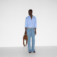 An evolution of a bamboo handle tote first introduced in 1991, the Gucci Diana represents the notion of style in constant evolution and is reimagined with removable, neon leather belts—a nod to the functional bands used to keep the handles in shape. Here, a mini version of the emblematic style is presented in cuir leather. - Cuir leather - Shiny antique gold-toned hardware - This item comes with 2 decorative belt handle shapers as shown in the image - Microfiber lining with a suede-like finish - Double G - Interior open pocket - Bamboo handles with 3.1" drop - Web strap drop: 18.1" - 28.7" and leather strap drop: 17.3" - 21.6" - Web strap length: 35.4" - 55.9" and leather strap length: 36.6" - 42.9" - Mini size: 7.9"W x 6.3"H x 3.9"D - Weight: 1lbs approximately - Made in Italy - Fits up to: iPhone Pro Max/Plus, Airpods, small wallet, and lipstick