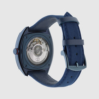 Powered by an automatic movement, the new Gucci Interlocking watch combines the historic codes of the House with a contemporary feel. The style in 41mm case offers a blue dial with a black PVD bezel. Finished with a blue rubber strap with textile effect, the accessory is enriched with the signature Interlocking G logo in a small seconds display. - 41mm stainless steel case with blue PVD coating, blue dial, Interlocking G small seconds display, black PVD bezel and blue rubber strap with textile effect - Sapphire glass with antireflective coating - The warranty certificates for Gucci watches purchased after March 1st 2022 are exclusively available online. - Download your certificate at - by using the serial number engraved on the back of your watch. - 10 ATM (100 meters/330 feet) - Power reserve: 56 hours - Automatic movement - Wrist size: 6.3" to 7.9" - YA142331 - Swiss Made