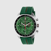 Blending sporty appeal with vibrant hues and signature archival symbols, the Gucci Interlocking line embodies the House’s heritage with a modern twist. Presented with a stainless steel case, this watch features a green rubber strap and a green dial, enriched with emblematic codes. - 41mm stainless steel case - Green dial, Interlocking G small seconds display - Sapphire glass with antireflective coating - Green rubber strap - The warranty certificates for Gucci watches purchased after March 1st 2022 are exclusively available online. - Download your certificate at - by using the serial number engraved on the back of your watch. - Quartz movement with chronograph function - 10 ATM (100 meters/330 feet) - YA142319 - Wrist size from 6.1" to 7.7" - Swiss Made