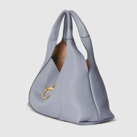 The new Gucci Softbit shoulder bag reimagines the House’s signature hardware as an oversized half Horsebit. It is both aesthetic and functional as the magnetic closure of the relaxed silhouette, crafted from supple, grainy leather with a rich texture. - Grey grainy leather - Gold-toned hardware - Brown microfiber lining - Inside: detachable pouch - Shoulder strap drop: 7.9" - 18.1"W x 10.2"H x 6. - Weight: 3.1lbs, approximately - Made in Italy - Fits iPhone Pro Max/Plus, Airpods, long wallet, and lipstick
