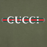 Pre-Fall 2025 pieces in muted black, grey and green tones spotlight delicate floral embroideries, embossed logos, and more craftsmanship details.Crafted from forest green heavy cotton jersey, this T-shirt is defined by Gucci Web print. - Forest green heavy cotton jersey - Gucci Web print - Crewneck - Short sleeves - Oversize fit - Length: 29.9"; Shoulder: 21.3"; Chest: 24"; Sleeves length: 11"; based on a size M - Made in Italy