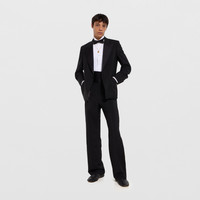 Introducing Spring Summer 2026. This style is featured as part of the "Rubacuori" look of La Famiglia, which reinterprets the House’s codes through singular personalities and distinctive aesthetic attitudes. Crafted from light wool mohair canvas, this suit is completed with satin details. - Black light wool mohair canvas - Satin details - Single-breasted jacket with full canvas construction, notch lapel, chest pocket, two front pockets and full lining - Trousers with belt loops, two front pockets, two back pockets and hook and zip closure - Jacket length: 29.7", based on a size 44(IT) - Leg opening: 11.02", based on a size 44(IT) - Made in Italy - Jacket: Fabric: 60% Mohair, 40% Wool - Fabric: 100% Silk - Lining: 100% Viscose - Pocket lining: 100% Cotton - Pants: Fabric: 60% Mohair, 40% Wool