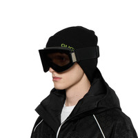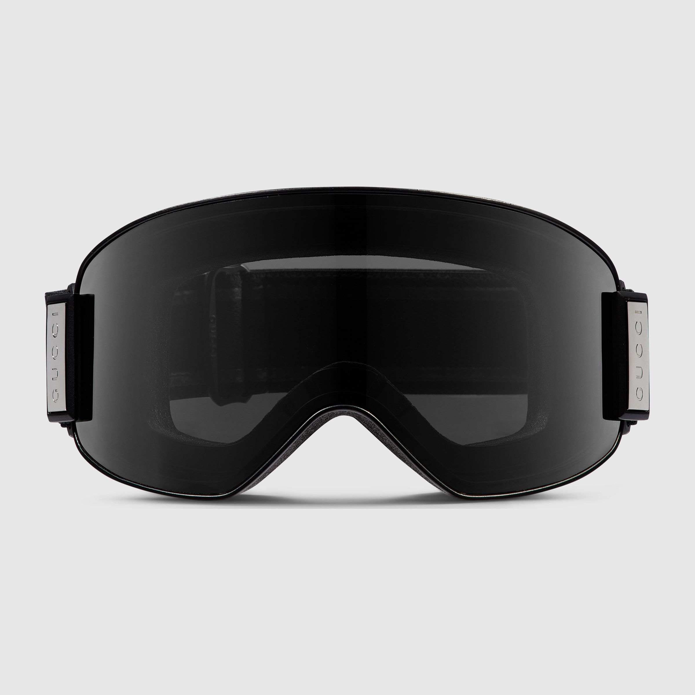 Gucci Altitude, the House's first winter sportswear collection, combines advanced performance and signature codes. Here the matte black injection frame is decorated with a Gucci logo on a metal plaque, while an adjustable black elastic strap appears at the back. A solid smoke lens completes this style. - Matte black injection frame - Gucci logo on metal plaque and adjustable black elastic strap - Solid smoke lens - 100% UVA/UVB protection - GG1974S - Lens height: 3.6" - Frame height: 3.8"; Frame width: 7.1" - Made in Italy - The soft black pouch is complete with an elastic drawstring, the Gucci logo and Interlocking G details.
