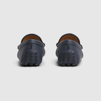 A nod to the House's equestrian past, the Horsebit has become a historical emblem throughout the years. In this version, symbol defines this pair of drivers crafted from blue GG embossed leather. - Blue GG embossed leather - Silver-toned hardware - Horsebit - Pebbled rubber sole - Flat - Height: 0.2" - Made in Italy