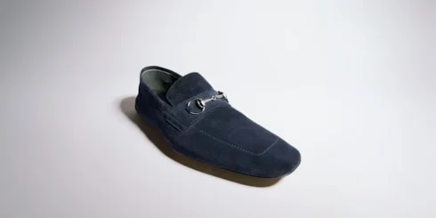 Generation Gucci delves into the brand's archival codes, and combines different generations of design into one aesthetic narrative. This style puts an edgy twist on the classic Horsebit loafer, defined by a slim leather sole and reverse construction, a refined shoemaking method that turns the upper inside‑out to create a glove‑like interior for a soft, comfortable and flexible fit. - Blue suede - Silver-toned hardware - Leather lining - Horsebit - Semi-square toe - Slim and flexible leather sole - Reverse construction - Padded insole for extra comfort - Flat - Made in Italy - This style runs large. We recommend selecting at least one size down.