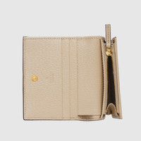 The spirit of self-expression was the defining note of the collection. Speaking to this theme, archival elements come together to create something new that expresses the House's contemporary spirit. This GG Supreme card case is accentuated by the green and red Web stripe and the Double G. - Beige and white GG Supreme canvas - Oatmeal leather trim - Gold-toned hardware - Green and red Web - Moiré lining - Double G - Five card slots - Interior open pocket - Interior zipper pocket - Snap button closure - Open: 4.5"W x 7"H - Closed: 4.5"W x 3.5"H x 1"D - Made in Italy