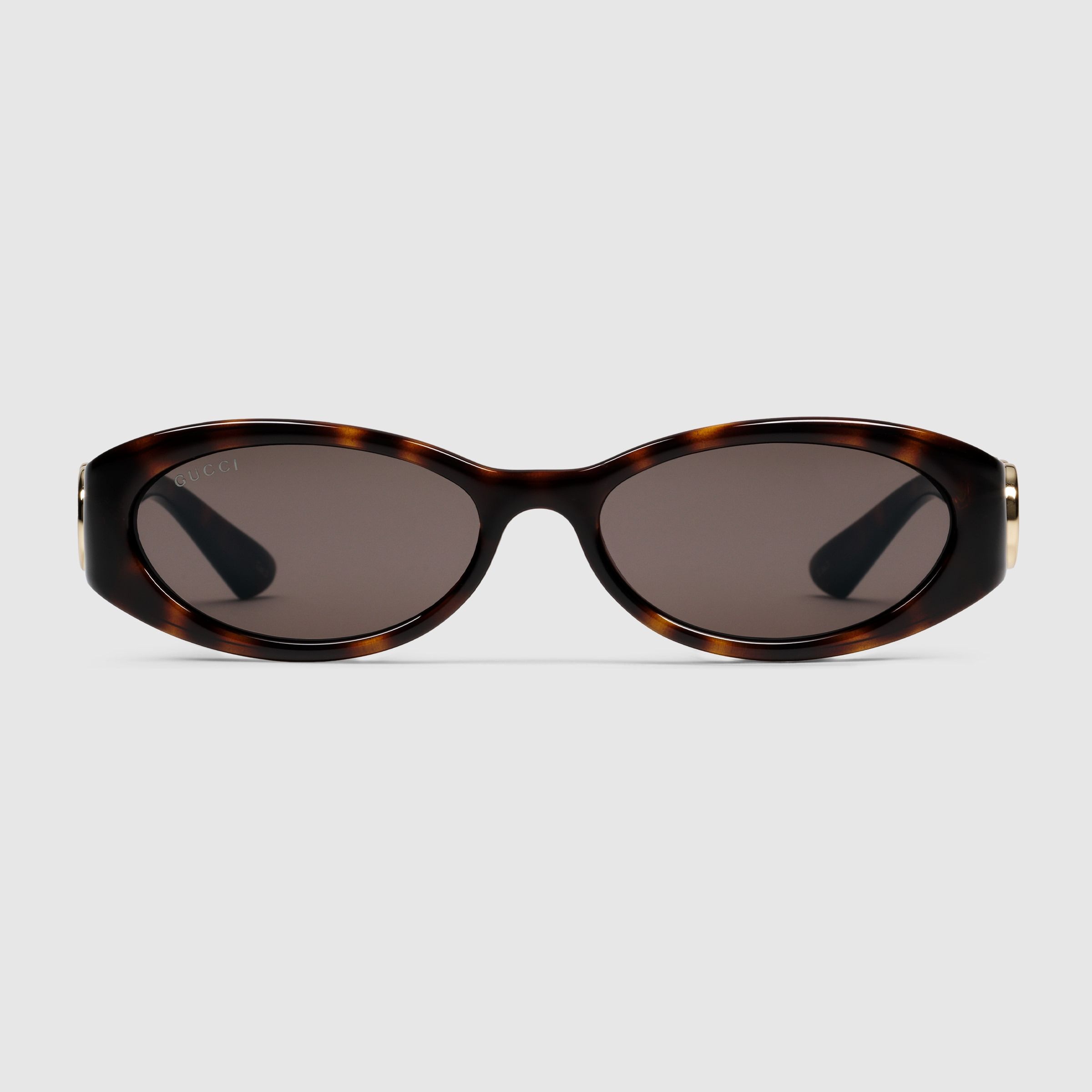 The Cruise 2024 eyewear collection successfully combines the coveted silhouettes of bygone decades with a contemporary logo feel. Here, a tortoiseshell oval injection frame pairs with an Interlocking G cut out detail. - Shiny tortoiseshell injection frames - Shiny tortoiseshell injection temples with Interlocking G cut-out detail - Solid brown lens - 100% UVA/UVB protection - GG1660S - Temple length: 5.3"; Lens height: 1.2", Nose bridge length: 0.6" - Made in Japan - The glasses will arrive in a velvet case, available in a range of six jewel-toned colors, and paired with a coordinating satin lining. The case color will be individually selected for each pair of glasses, and comes with a matching satin flannel pouch and ivory microfiber cloth.