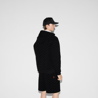 Taking inspiration from founder Guccio Gucci's monogram, the GG motif continues to be a firm favorite of the House. This regular fit hooded sweatshirt has been made from a viscose jersey and is defined by an allover GG flock print. A green and red Web loop detail completes the silhouette. - Black viscose jersey - Allover GG flock print - Fixed hood - Dropped shoulder - Long sleeves - Kangaroo pocket - Web loop detail - Rib trim - Zip closure - Regular fit - Made in Italy - The product shown in this image is a size small