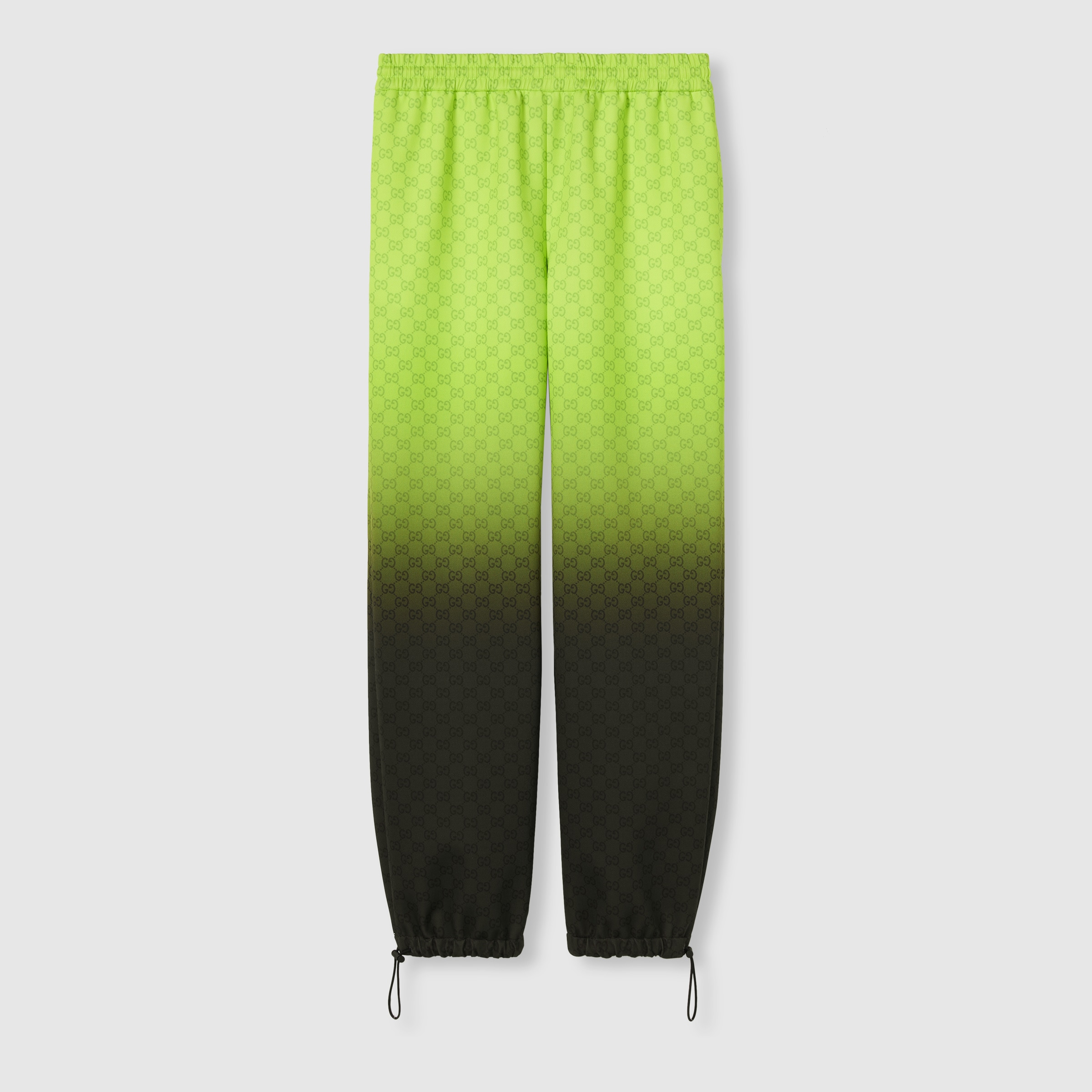 Gradient colors are meticulously created to bring out the texture of the materials and the recognizable GG motif. Crafted from gradient lime and black light neoprene, this pair of sportswear pants is defined by an allover GG print with degrade effect. - Gradient lime and black light neoprene - GG print with degrade effect - Elastic waistband - Made in Italy