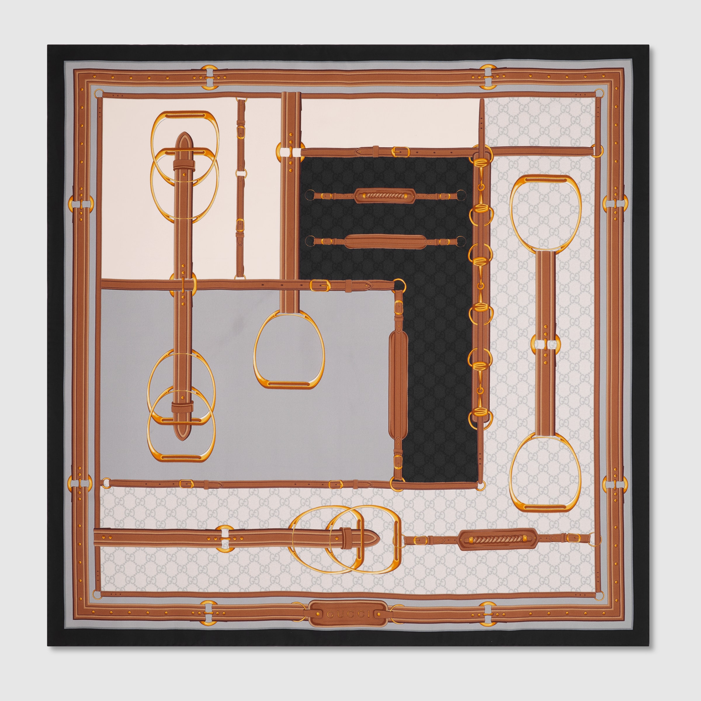 Horsebit details and riding motifs in sophisticated tones pay homage to the House's link with the equestrian world. Presented as part of the Pre-Fall 2025 collection, this silk carre has been crafted from a silk twill and features an allover Horsebit belts print. - Grey and ivory silk twill - Allover Horsebit belts print - 35.4"W x 35.4"L - Made in Italy - The dimensions of this item may vary slightly as the hem is hand-sewn