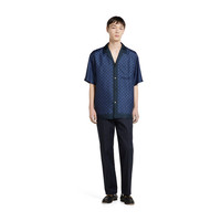 Gucci's House codes continue to evolve for the new season. Crafted from blue silk twill, this regular fit shirt features an allover GG print. - Blue silk twill - Allover GG print - Notch collar - Dropped shoulder - Short sleeves - Chest pocket - Side slits - Button closure - Regular fit - Length: 29.5"; Shoulder: 20.1"; Chest: 46.9"; Sleeves length: 20.9"; based on a size 48 IT - Made in Italy