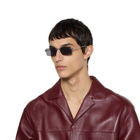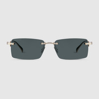 The Pre-Fall 2025 eyewear collection blends statement silhouettes from the archives with a contemporary touch. These rectangular frame sunglasses are stated in light gold-toned metal with a cut-out Gucci logo. - Shiny light gold-toned metal frames - Shiny light gold-toned metal temples with cut-out Gucci logo - Solid grey lens - 100% UVA/UVB protection - GG1941S - Temple length: 5.5"; Lens height: 1.3", Nose bridge length: 0.6" - Frame height: 1.3"; Frame width: 5.5"; Hinge to hinge: 5.4" - The glasses will arrive in a velvet case, available in a range of six jewel-toned colors and paired with a coordinating satin lining. The case color will be individually selected for each pair of glasses and comes with a matching satin flannel pouch and ivory microfiber cloth.