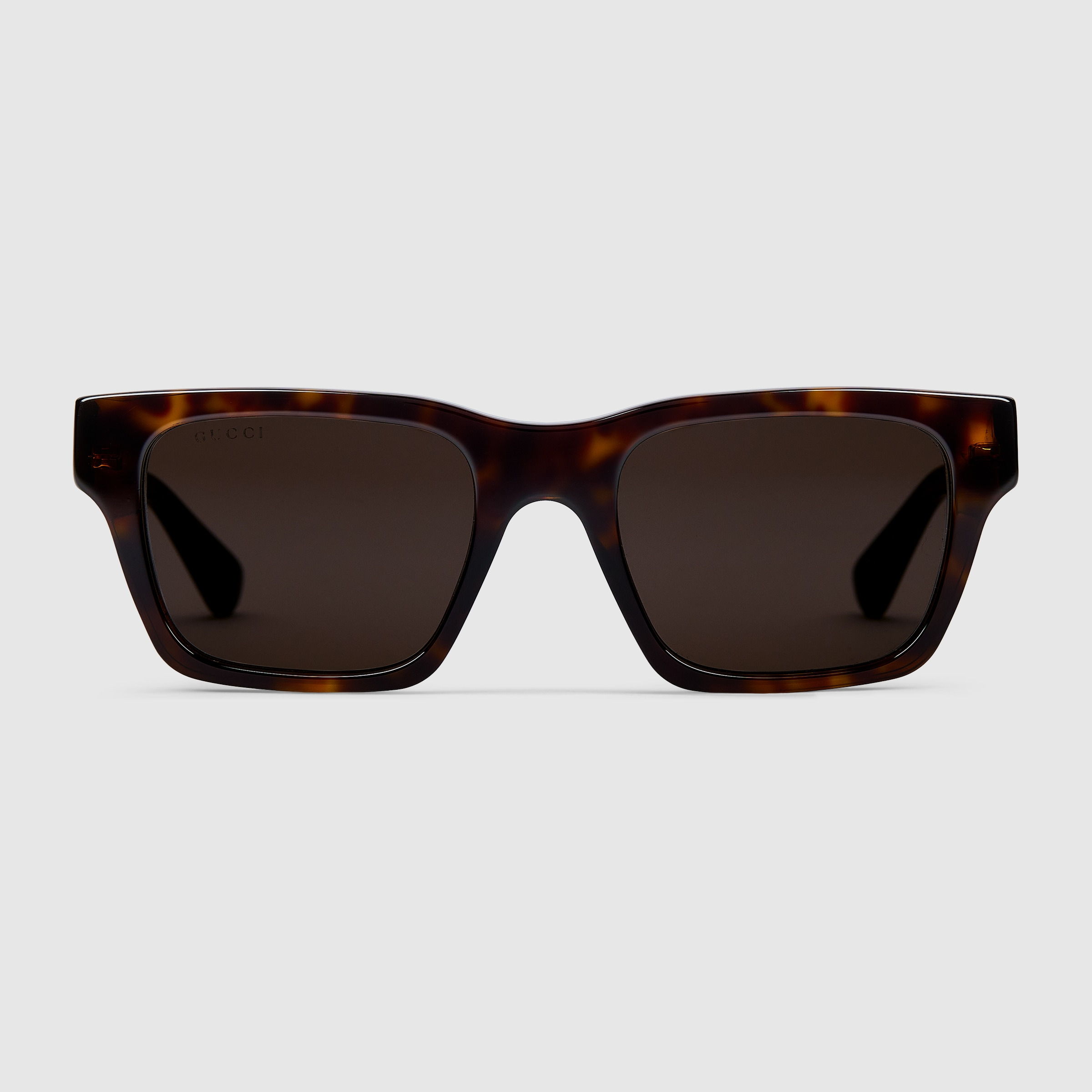 The Cruise 2025 eyewear collection blends an essential silhouette and subtle motifs in a contemporary design. These rectangular sunglasses are accentuated by a discreet Gucci logo and Web detail. - Shiny brown tortoiseshell acetate frame - Shiny brown tortoiseshell acetate temples with Gucci logo and Web detail - Solid brown lens - 100% UVA/UVB protection - GG1889S - Temple length: 5.7"; Lens height: 1.6"; Nose bridge length: 0.8" - Frame height: 1.8"; Frame width: 5.7"; Hinge to hinge: 5.3" - Made in Italy - The eyewear case in the House’s signature Gucci Rosso Ancora red hue is complete with a magnetic closure and white interior.
