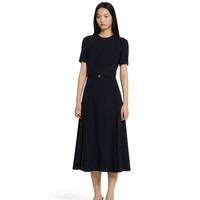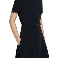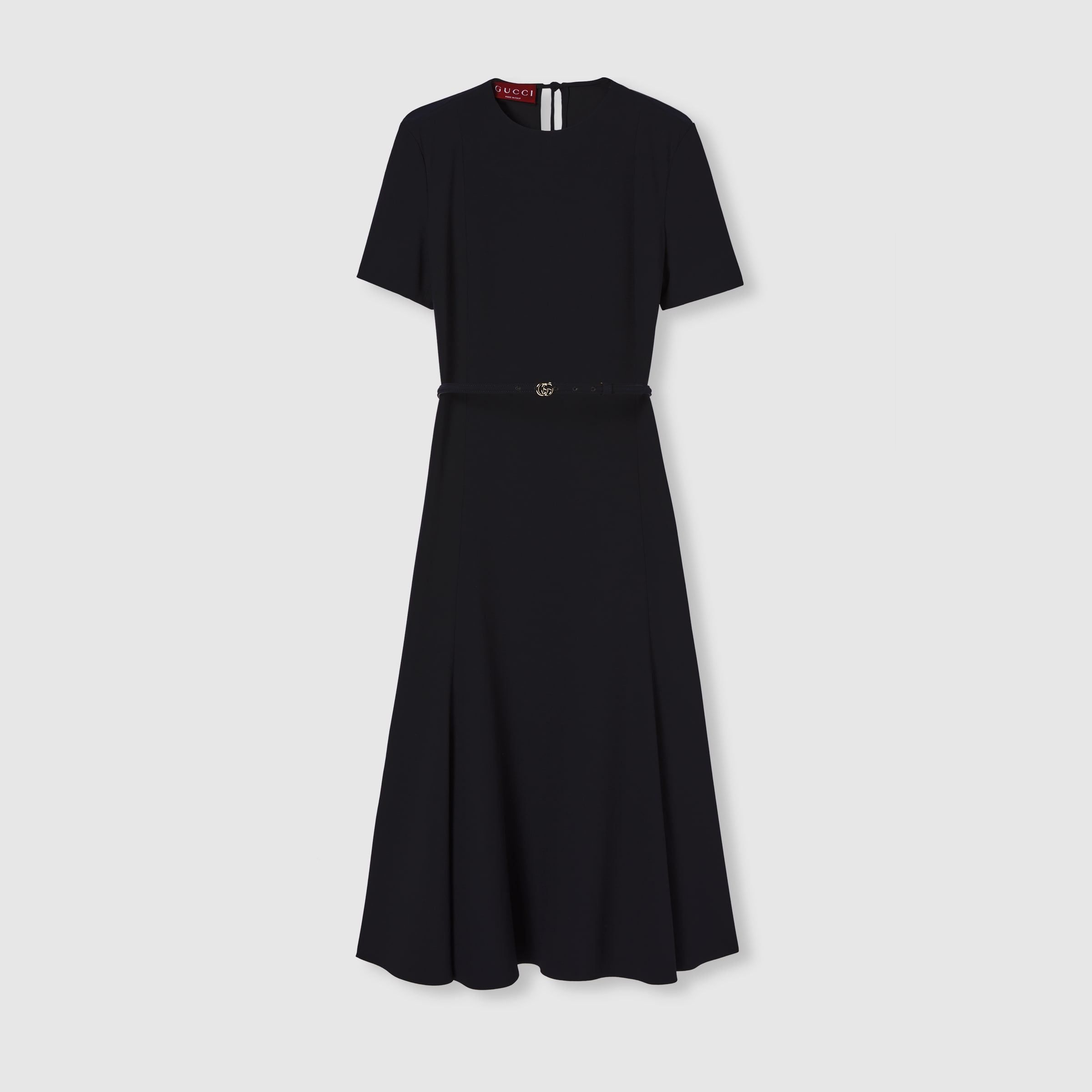 From light to deep shades, elegant pieces crafted from refined materials highlight sensual silhouettes, elevating the Pre-fall 2025 collection. This viscose satin dress has a detachable leather belt with a Double G buckle. Short sleeves and a full skirt complete the design. - Black viscose satin - Unlined - Crewneck - Short sleeves - Detachable leather belt with Double G buckle - Full skirt - Tie ribbon and zip closure - Made in Italy