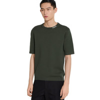 The Pre-Fall 2025 collection spotlights essential silhouettes with emblematic details from daywear to eveningwear. This T-shirt is made from forest green silk cotton knit and decorated with a Gucci intarsia. - Forest green silk and cotton knit - Gucci intarsia - Crewneck - Short sleeves - Rib trim - Length: 25.6"; Shoulder: 16.9"; Chest: 20.1"; Sleeves length: 11"; based on a size M - Made in Italy - Fabric: 55% Silk, 45% Cotton - Trimming: 44% Silk, 37% Cotton, 18% Polyamide, 1% Elastane