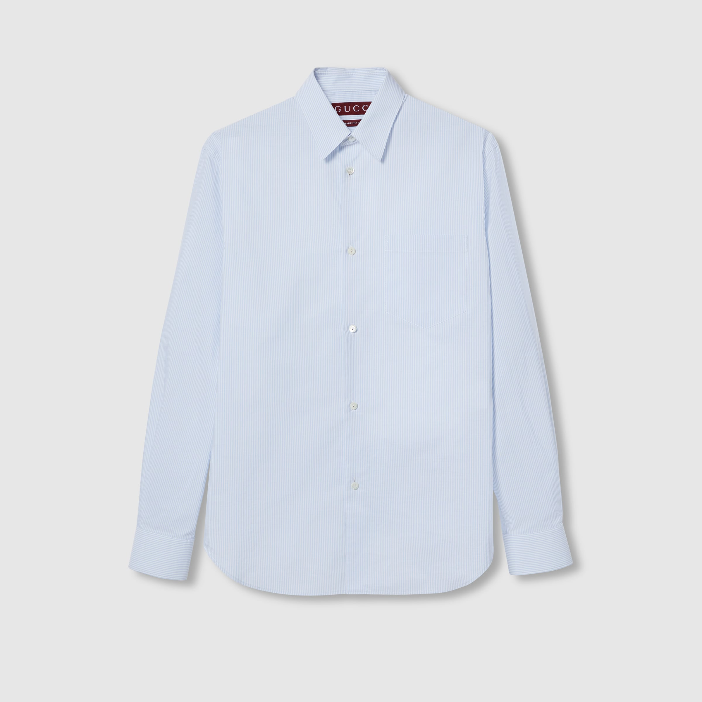 Creative Director Sabato De Sarno reinvents the essential men's wardrobe for the Pre-Fall 2024 collection, with wearabilty and fit becoming key statements. Here, this shirt is crafted from light blue and white striped cotton poplin. - White and light blue striped cotton poplin - Web fil coupe - Point neck - Chest pocket - Button-through cuffs - Shoulder drop: 19.2"; based on a size 15+ - Chest: 46"; based on a size 15+ - Sleeves length: 35"; based on a size 15+ - Neck width: 15.9"; based on a size 15+ - Button closure - Cut for a regular fit - Length: 29.9"; based on a size 15+ - Made in Italy - The product shown in this image is a size 15+