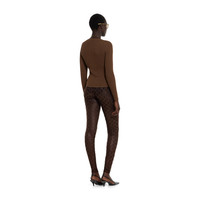 The Cruise 2026 women's ready-to-wear collection reinterprets 1990s modernism with sleek silhouettes, anchored in monochromatic black or white, and effortless separates complete with leggings. Crafted from brown tulle, this pair of leggings is enriched with GG crystals. - Brown tulle - GG crystals - Detachable culotte - Length: 43.3" based on a size XS