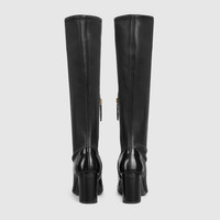 In the Fall Winter 2025 collection, a nod to the House's equestrian past, the Horsebit has become both a historical and contemporary emblem throughout the years. In this version, the half Horsebit hardware defines this pair of boots crafted in soft leather. - Black stretch leather - Light gold-toned hardware - Maxi half Horsebit - Leather sole - Zip closure - Mid-heel - Height: 2.9" - Made in Italy