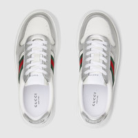 In the Fall Winter 2025 collection, with a chunky silhouette, this pair of sneakers plays with shapes, colors and materials to create a retro feel. With a defined rubber sole, the shoe is crafted from metallic leather with a leather trim, while the Web detail completes the style. - Silver metallic leather - Leather trim - Web detail - Rubber sole - Additional pair of laces included - Low heel - Height: .5" - Made in Italy
