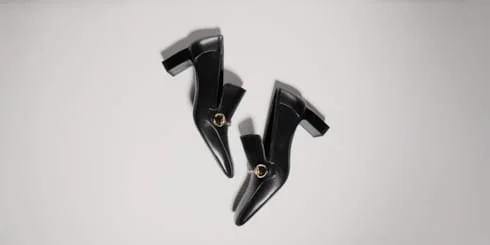 This style is part of the Gucci Primavera collection. The Galleria heeled loafer draws inspiration from the refined spirit of Milan’s historic arcades. The design highlights a slightly elongated square toe and chunky block heel, accented with the emblematic Horsebit in gold-toned finish for a signature touch. - Black nappa leather - Gold-toned hardware - Tonal lining - Horsebit - Slightly elongated square toe - Chunky heel - Tonal sole - Mid heel - Height: 2.4" - Made in Italy