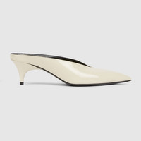 In the Fall Winter 2025 collection, a bold expression of femininity, this women's heeled mule is presented in glossy patent leather with a sharp pointed toe. The sleek silhouette channels a sense of contemporary sophistication, blending retro undertones with modern elegance. - Ivory patent leather - Leather sole - Mid-heel - Height: 2.1" - Made in Italy