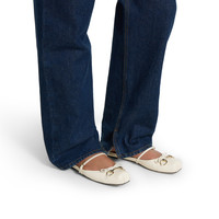 In the Fall Winter 2025 collection, this Horsebit ballet flat mule pays homage to the original ballet shoe silhouette defined by a squared tucked toe cap and the delicate bow detail. This style is crafted in leather and defined by a light gold-toned hardware. The "sacchetto" construction ensures a high level of comfort. - Off white leather - Light gold-toned hardware - Leather lining - Horsebit - Leather bow detail - Leather sole - "Sacchetto" construction - Soft padded insole - Strap closure with adjustable buckle - Flat - Made in Italy