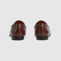 The Horsebit loafer, representative of Gucci heritage, speaks of classic elegance. This model is crafted in dark brown leather and is defined by the iconic Horsebit. - Dark brown leather - Women's - Gold-toned hardware - Horsebit - Leather sole - Mid-heel - Heel height: 2.5" - Made in Italy