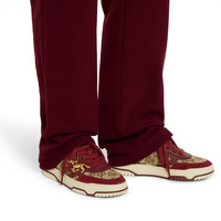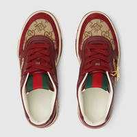 This Gucci Re-Web style is embellished with a horse-shaped charm. Crafted in GG canvas, the red leather trim and the signature Web completes the style. - Beige and dark brown GG canvas - Gucci Rosso Ancora red leather and suede trim - Horse-shaped charm - Leather lining - Gucci script and Interlocking G Web tag - Rubber outsole with Interlocking G and Gucci script logo - Interlocking G details on the eyelets - Web on the tongue - Additional pair of laces included - Lace-up closure - Flat - Height: 0.4" - Fits true to size