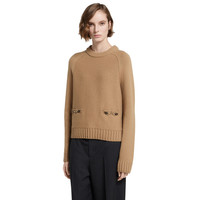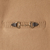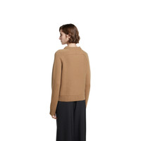 This crewneck top with long sleeves appears as part of the Pre-Fall 2025 collection in a wool cashmere blend. The classic design is enriched with two Horsebit hardware details across the front. - Camel wool cashmere - Crewneck - Horsebit detail - Long sleeves - Wide rib trim - Made in Italy