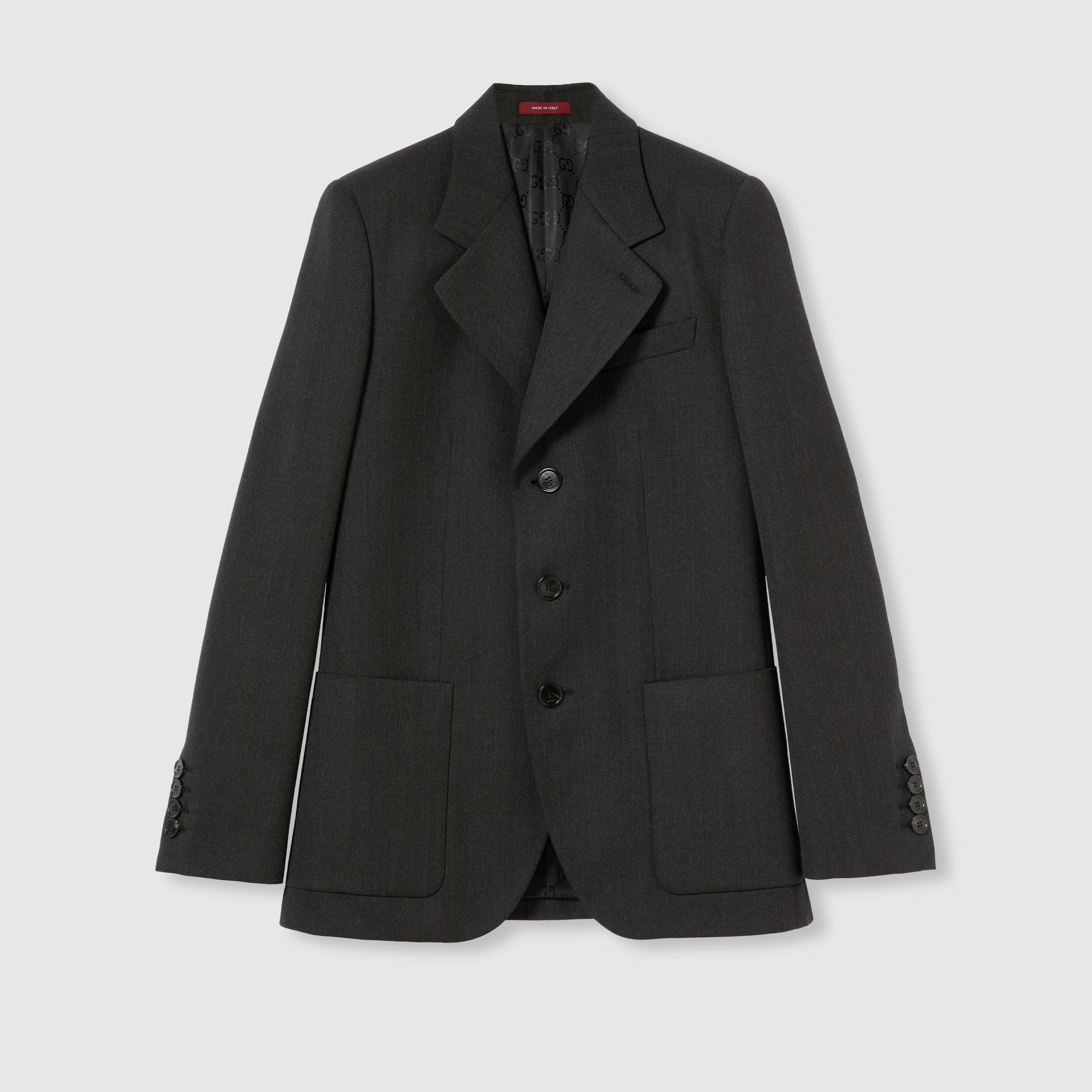 In the Fall Winter 2025 collection, tailoring embraces heritage codes with a contemporary touch. This single-breasted jacket features a notch lapel, front button closure and a structured silhouette. The design is completed by a chest welt pocket and two large patch pockets. - Dark grey wool mohair - Fully lined - Notch lapel - Chest welt pocket - Two front patch pockets - Buttoned cuffs - Button closure - Made in Italy