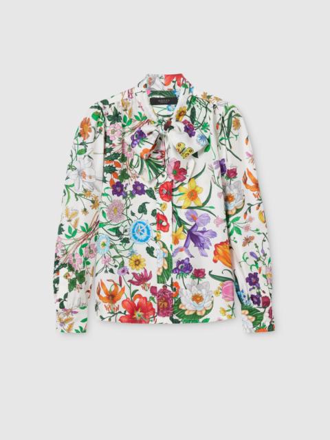Printed silk twill shirt with bow