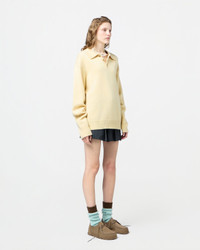 - Men's sizing, intended to fit true to size. - RIB POLO COLLAR - RIB CUFF AND HEM TRIM - THREE-BUTTON HALF PLACKET CLOSURE - Signature GIR branding at center back - Medium-weight - 100% Cashmere - FLOOR IS 5' 10" / 178 CM and is wearing a medium. - BRADLEY IS 6' 2.5" / 189 CM and is wearing a Medium. - Premium cashmere sourced from inner Mongolia, manufactured in China