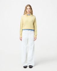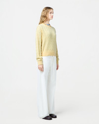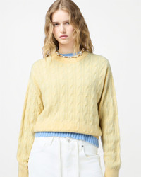 - LIGHT WEIGHT CABLE CREW - RIB CUFF, HEM AND NECK TRIM - Signature GIR branding at center back - 100% CASHMERE - FLOOR IS 5' 10" / 178 CM and is wearing a Small. - Premium cashmere sourced from inner Mongolia, manufactured in China