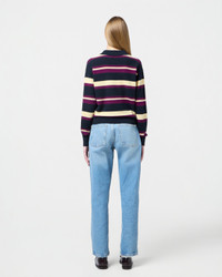 - Women's sizing, intended for a relaxed fit - LIGHT-WEIGHT JERSEY STRIPE POLO - Ribbed cuff and hem - POLO COLLAR IN RIB STITCH - FRONT THREE BUTTON PLACKET CLOSURE - Signature GIR branding at center back neck - 100% Cashmere - FLOOR IS 5' 10" / 178 CM and is wearing a Small. - Premium cashmere sourced from inner Mongolia, manufactured in China