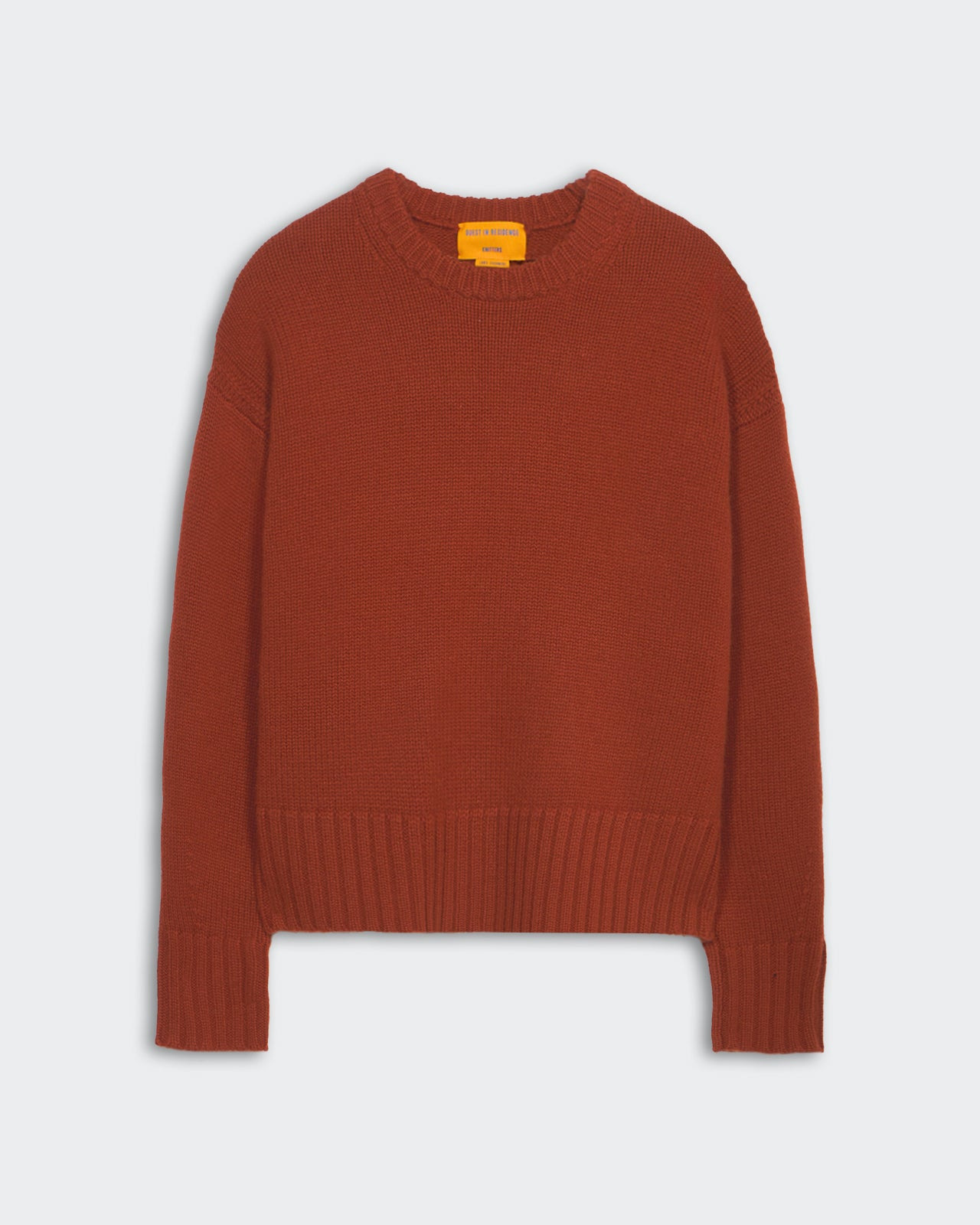 - Women's sizing, intended for an oversized fit - Heavy-weight Crew neck - Dropped shoulder - Reverse jersey detail around arm & shoulder with tuck stitch - Ribbed neck trim, cuff, and hem - Side slit at hem - Jersey cable - Signature GIR branding at center back - 100% Cashmere - ELLA IS 5' 11" / 180 CM and is wearing a Small. - Premium cashmere sourced from inner Mongolia, manufactured in China
