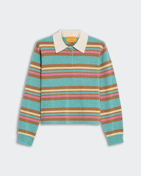 - Women's sizing, intended for a relaxed fit - JERSEY RUGBY POLO sweater - LIGHT-WEIGHT knit - HORIZONTAL KNIT WITH SELF-EDGE HEM - TEXTURED STRIPE DESIGN - RIB SLEEVE CUFF - POLO COLLAR with HIDDEN THREE BUTTON PLACKET CLOSURE - Signature GIR branding at center back neck - 100% Cashmere - Yana is 5' 10" / 178 CM and is wearing a small. - Premium cashmere sourced from inner Mongolia, manufactured in China