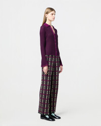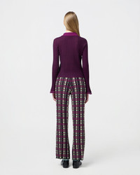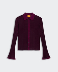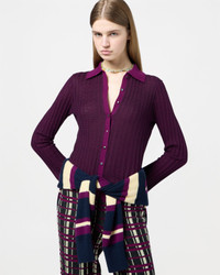 - FINE WEIGHT RIB STRIPED SHIRT - SOLID COLOR FRONT BUTTON CLOSURE WITH MOP SHELL BUTTONS - RIB POLO COLLAR IN SOLID COLOR - SPECIAL LACE GINGHAM STITCH DETAIL AT SLEEVE & HEM - Signature GIR branding at center back - 70% SILK 30% LINEN BLEND - NADINE IS 5' 9" / 175 CM AND is wearing a small.