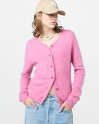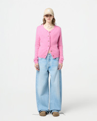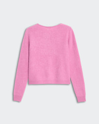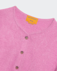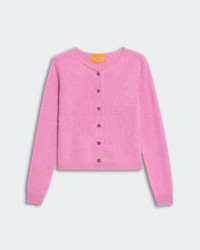 - Brushed Cashmere Crew-Neck Cardigan - Women's sizing, intended to fit true to size. - Medium-weight knit - GRIZZLY BRUSHED EFFECT - RIB HEM AND CUFF TRIM - JERSEY TUBULAR BINDING AROUND NECK AND FRONT PLACKET - Signature GIR branding at center back neck - 100% Cashmere - NADINE IS 5' 9" / 175 CM and is wearing a Small. - Premium cashmere sourced from inner Mongolia, manufactured in China