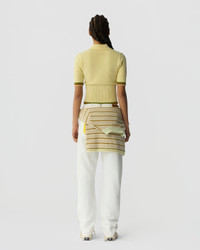 The Marcella Polo is a women’s light-weight cotton–cashmere polo featuring a textured pique stitch with a sporty half-zip neckline and striped rib trim. Versatile and breathable, this knit polo delivers a modern sporty-prep look that pairs effortlessly with denim or layers neatly under other knits for everyday wear. DETAILS - LIGHT-WEIGHT PIQUE STITCH POLO - HIGH RIB HEM AND CUFF TRIM - STRIPING IN SLEEVE CUFF AND HEM - POLO COLLAR IN RIB STITCH - FRONT HALF ZIP PLACKET - BACK NECK GIR BRANDING - 85% COTTON, 15% CASHMERE - SCULY IS 5' 10.5" / 179 CM AND IS WEARING A SIZE SMALL.